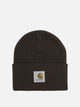 Carhartt WIP "Acrylic Watch" cap, featuring a ribbed knit acrylic fabric construction. The profile is basic, with a fitted silhouette that conforms to the shape of the head. The turned-up hem integrates a fabric label with Carhartt WIP logo applied to the front. Stretch material ensures a versatile and stable fit during use. Compact construction ensures consistent thermal comfort.