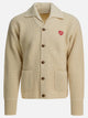 Human Made wool cardigan made of shaved knit with a soft texture. The garment features a compact construction with a removable collar applied by snap buttons. There are two patch pockets on the front and a heart-shaped patch sewn on the left chest. The sleeves are long and feature a wide line, completing a relaxed and regular silhouette.