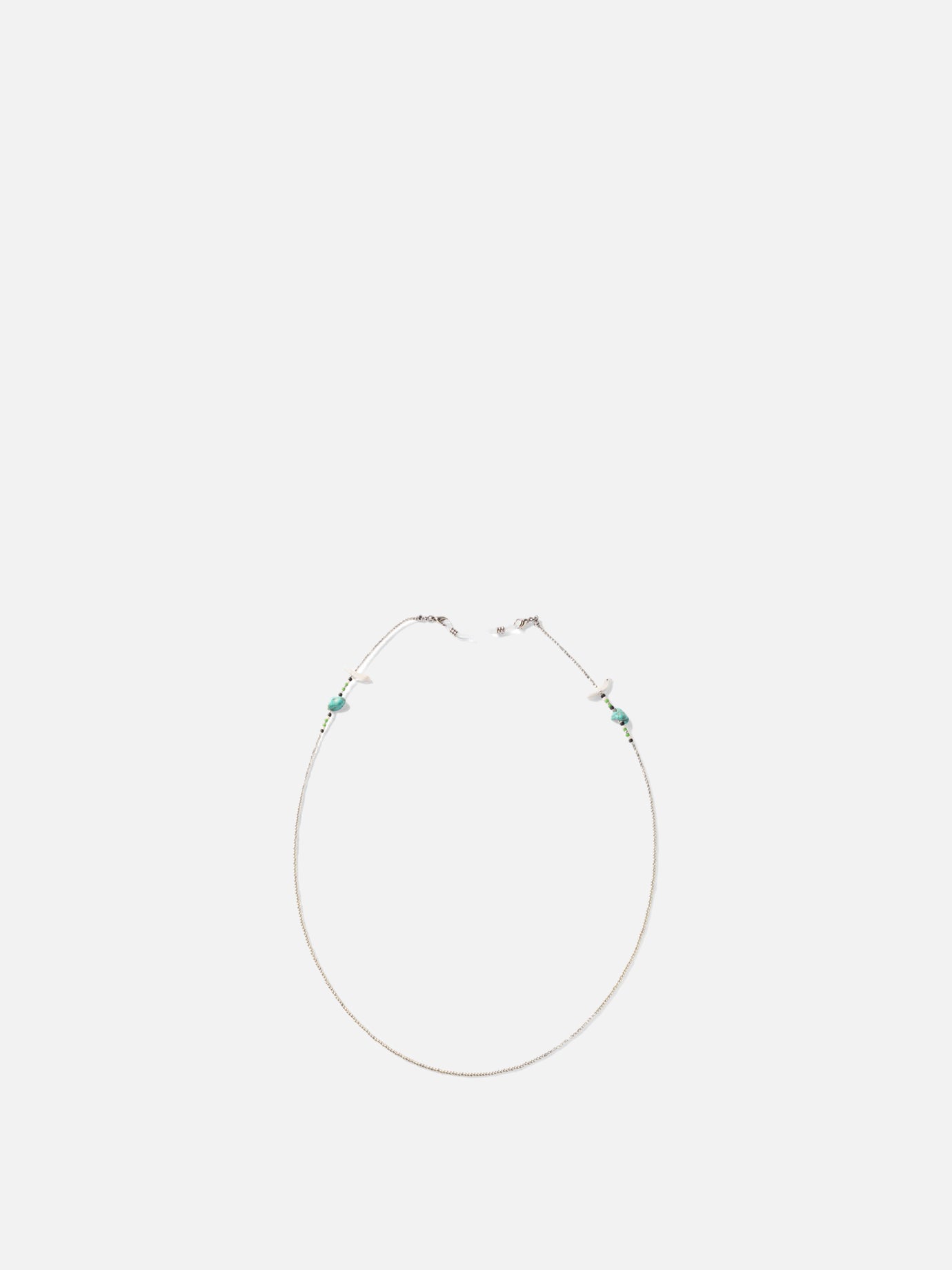 Discover the charm of KAPITAL's signature eyeglass lanyard, a unique accessory that combines style and functionality. This eyeglass lanyard stands out for its refined combination of bird-shaped shell beads, turquoise and glass beads, lending a touch of elegance and originality to any outfit. An ideal accessory for the modern man who likes to stand out with sophisticated details.