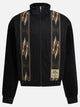 Kapital "Kochi & Zaphyr" zipper sweatshirt, made with hybrid construction that alternates front panels of geometrically patterned jacquard fabric and contrasting smooth surfaces. Structure features medium corduroy sleeves, high collar and full-zip front closure. Ribbed elastic cuffs and bottom hem provide stability to the fit. Side pockets with concealed zippers are integrated into the seams; patch applied to lower front panel. Interior finished with smooth fabric for added comfort. Relaxed cut with slightly dropped shoulders.