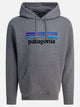 Patagonia "P-6 Logo Uprisal" sweatshirt made from a combination of cotton and polyester, both derived from recycled materials. Hooded construction, wide silhouette and ribbed details on cuffs and hem. The fabric is obtained by reusing textile scraps and recycled plastic bottles, with graphics printed on the chest. Product assembled in a Fair Trade Certified™ factory.