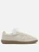Alohas "TB 490" sneakers features a suede construction with crochet trim applied along the upper. The silhouette is low, and the construction includes a flat rubber sole attached via exposed stitching, details that continue along the sides. The embossed logo appears on the tongue and sides. Traditional lace-up closure and bow option, both of which come with the model.