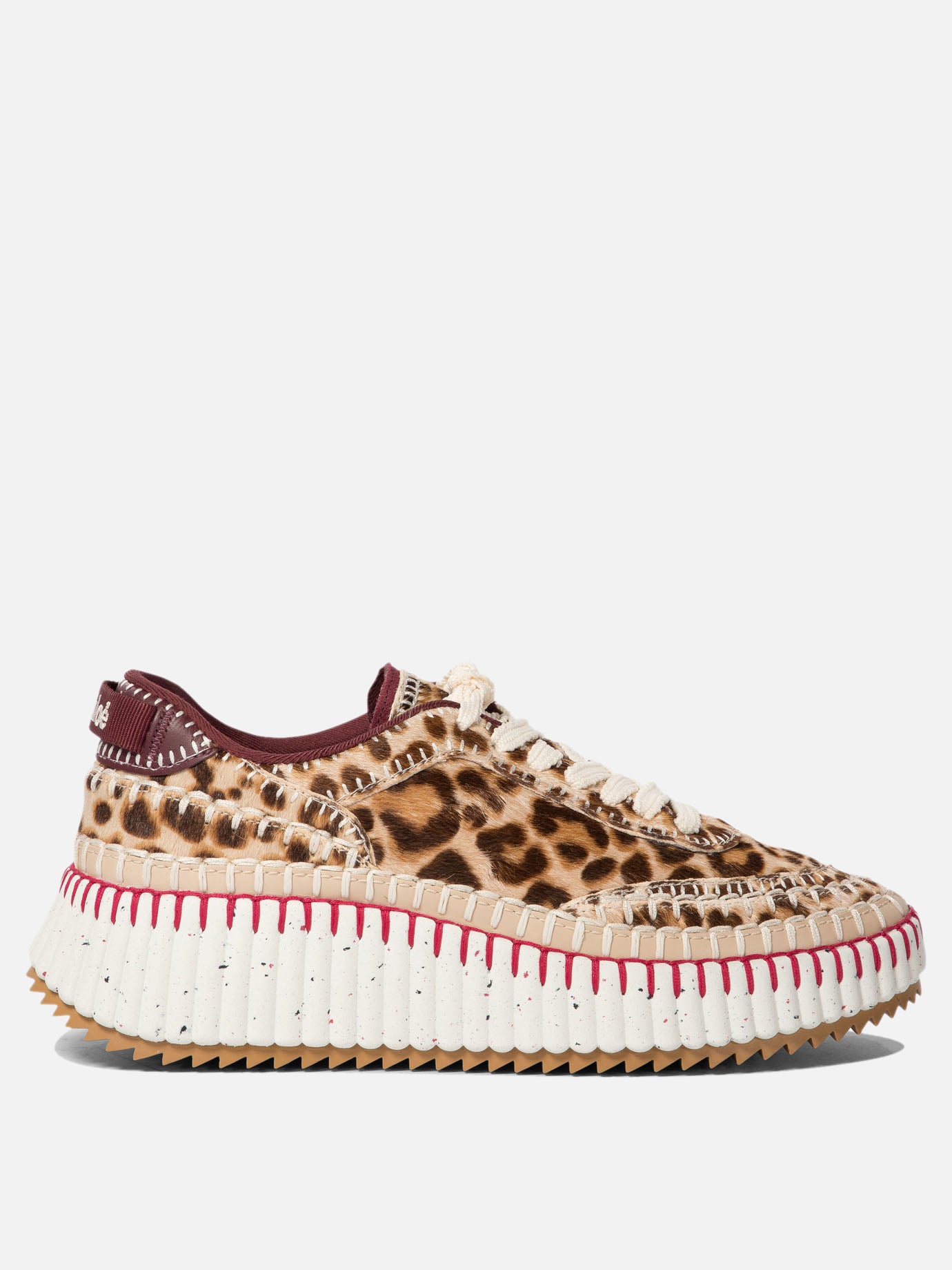 Chloé's "Nama" sneakers represent the perfect marriage of style and sustainability. Made of leopard-print pony-effect cowhide, these shoes offer an eco-friendly design that respects the environment. Their lightweight and comfortable construction makes them ideal for year-round wear, adding a playful touch to any look.