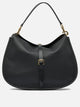 Etro "Pony" shoulder bag made of tumbled leather with maxi structure with soft lines. The model features double closure, main with magnetic button and secondary with functional metal buckle. The hobo silhouette is defined by a handle with Paisley detail positioned at the snap hooks, offering shoulder wearability. The handle and shoulder strap can be replaced with interchangeable elements. Metal accessories with a gold finish complete the construction.