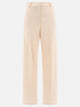 F.IT wide-leg tailored pants with structured construction and a wide silhouette. Made from a polyester-elastane composite fabric, they feature a marked front pleat down the leg, integrated belt loops, and a front zipper and concealed button closure. The wide silhouette is defined by flat seams and minimal details that keep the look essential.