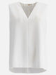F.IT V-neck tank top with a streamlined silhouette, made from polyester-based fabric, features a front V-neck and a central pleat that defines the structure. The sleeveless cut emphasizes the straight, minimal silhouette, while the matte fabrication enhances the texture of the material. The bottom hem features a clean finish with no visible seams.