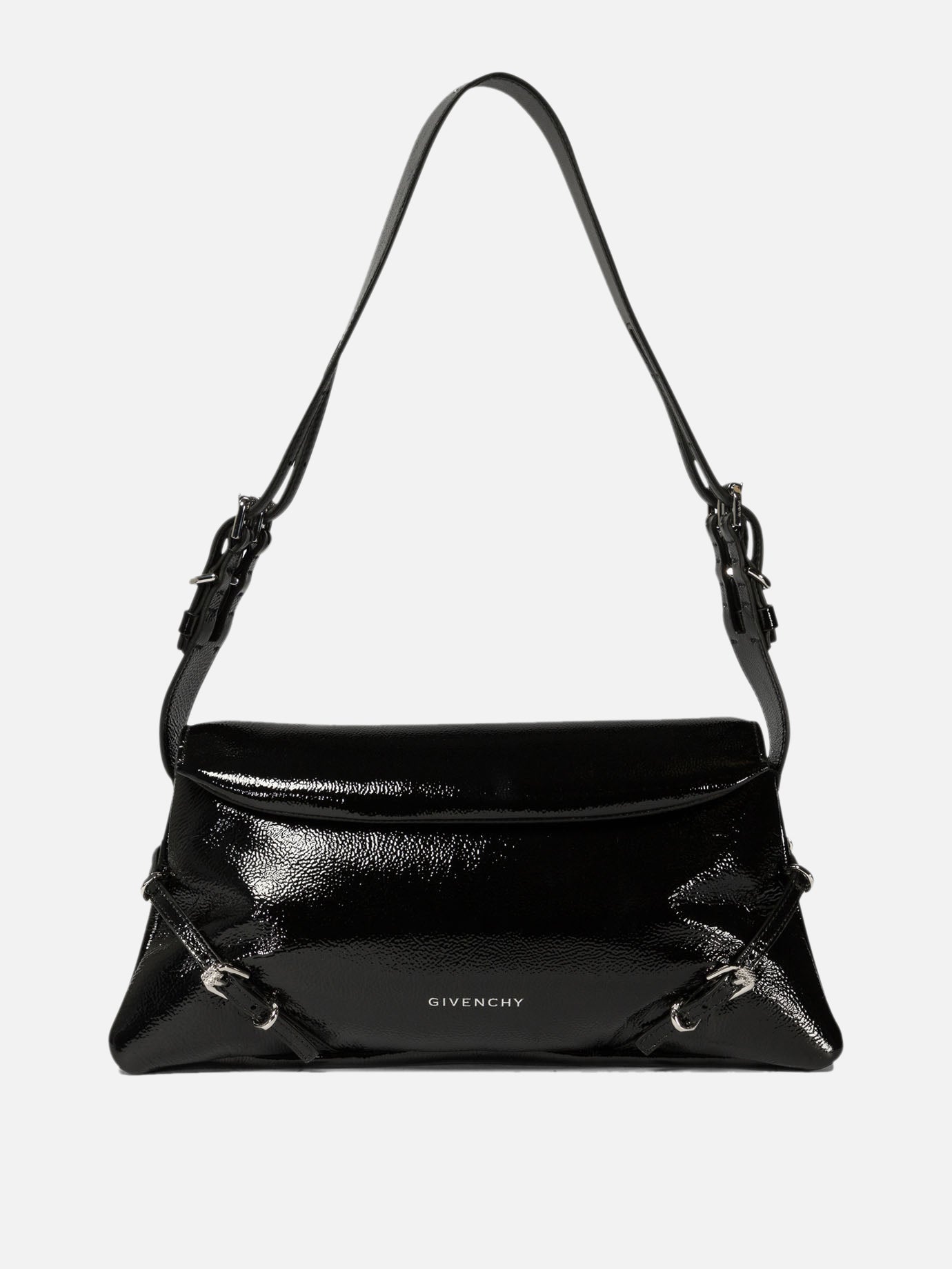 Givenchy's "P'tit Voyou Small" shoulder bag is a perfect example of elegance and practicality. Designed for the modern woman who appreciates uncompromising style, this glossy patent calfskin bag adds a touch of luxury to the everyday look.