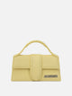 Jacquemus "The Child" handbag, made of faux python leather, features a compact and defined structure. The construction features a padded top handle and a rigid front flap design, secured by a magnetic closure. The geometric silhouette is complemented by a detachable long shoulder strap and gold metallic details, while the interior is fully lined in cotton with precise trim on dyed edges.
