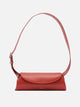 Jil Sander "Cannolo" shoulder bag made of leather, constructed with compact structure and essential geometric lines. The silhouette is cylindrical, defined by smooth trim and outlined edges. Adjustable leather shoulder strap integrated at the top, top magnetic button closure. The model features an interior card slot, embossed Jil Sander logo with foil applique on the front surface. Nappa leather interior lining.