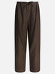 "Cove LDS" LouLou De Saison wool chambray pants, featuring a wide-leg construction and double front darts. The construction includes an integrated drawstring waistband for functional waist adjustment. The wide silhouette promotes a soft fall of fabric throughout the length of the garment, with stitched details that give definition to the shape and facilitate wearability.