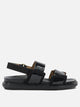 Marni leather "Fussbett" sandals made of patent leather with naplak effect and suede inserts. The construction features an essential line characterized by a double upper strap and adjustable Velcro back closure. The anatomical insole is lined with smooth leather, while the non-slip rubber sole defines the structure. The silhouette maintains an understated profile with no additional decorative elements.