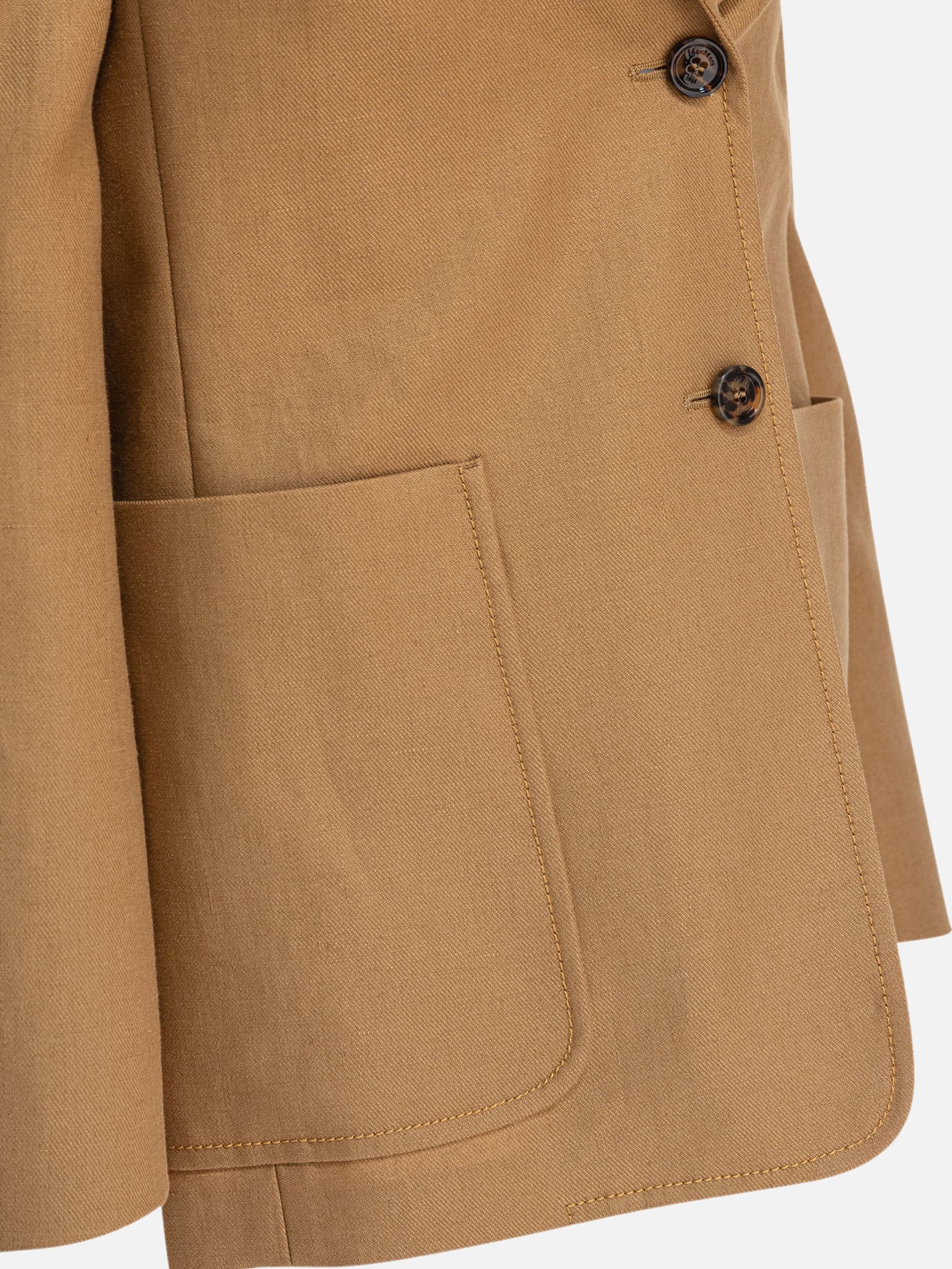 Max Mara's single-breasted linen blazer is the perfect garment for the modern woman who seeks elegance and comfort in one piece. This blazer stands out for its refined and versatile look, ideal for completing a sophisticated look for both work and formal occasions.