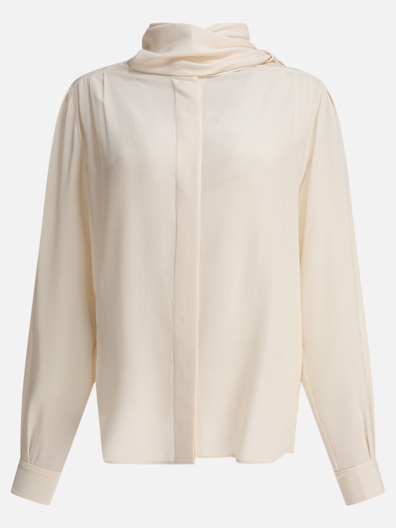 Discover the timeless elegance of Prada's silk marocaine shirt, designed for a woman who loves sophisticated and sophisticated style. Its solid color and long sleeves make it a versatile garment, perfect for those who want a refined look for any occasion.