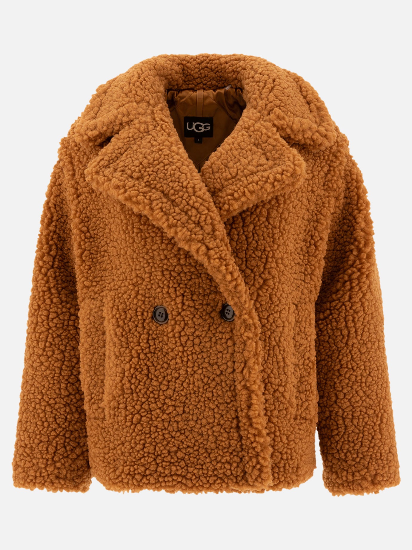 - Double-breasted teddy coat at the hips