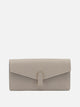 Valextra "Iside" clutch with chain, made of calfskin Millepunte leather. The short metal chain strap features a thick construction designed for shoulder wear. The compact construction houses a leather-lined main compartment, twist-look metal clasp with leather insert and hand-painted black lacquered Costa edges. Present inside is a flat pocket for credit cards.