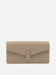 Valextra "Iside" clutch with chain, made of calfskin Millepunte leather. The short metal chain strap features a thick construction designed for shoulder wear. The compact construction houses a leather-lined main compartment, twist-look metal clasp with leather insert and hand-painted black lacquered Costa edges. Present inside is a flat pocket for credit cards.