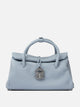 Zanellato "Dotta" handbag with a compact silhouette and structured construction. Made of grained leather, it features a roll-top closure with integrated magnetic system and tubular ribbons with twist-lock buckle. The top handle allows for hand carry, while the adjustable and removable shoulder strap offers flexibility in use. The interior is organized by a technical pocket for storing essential items.
